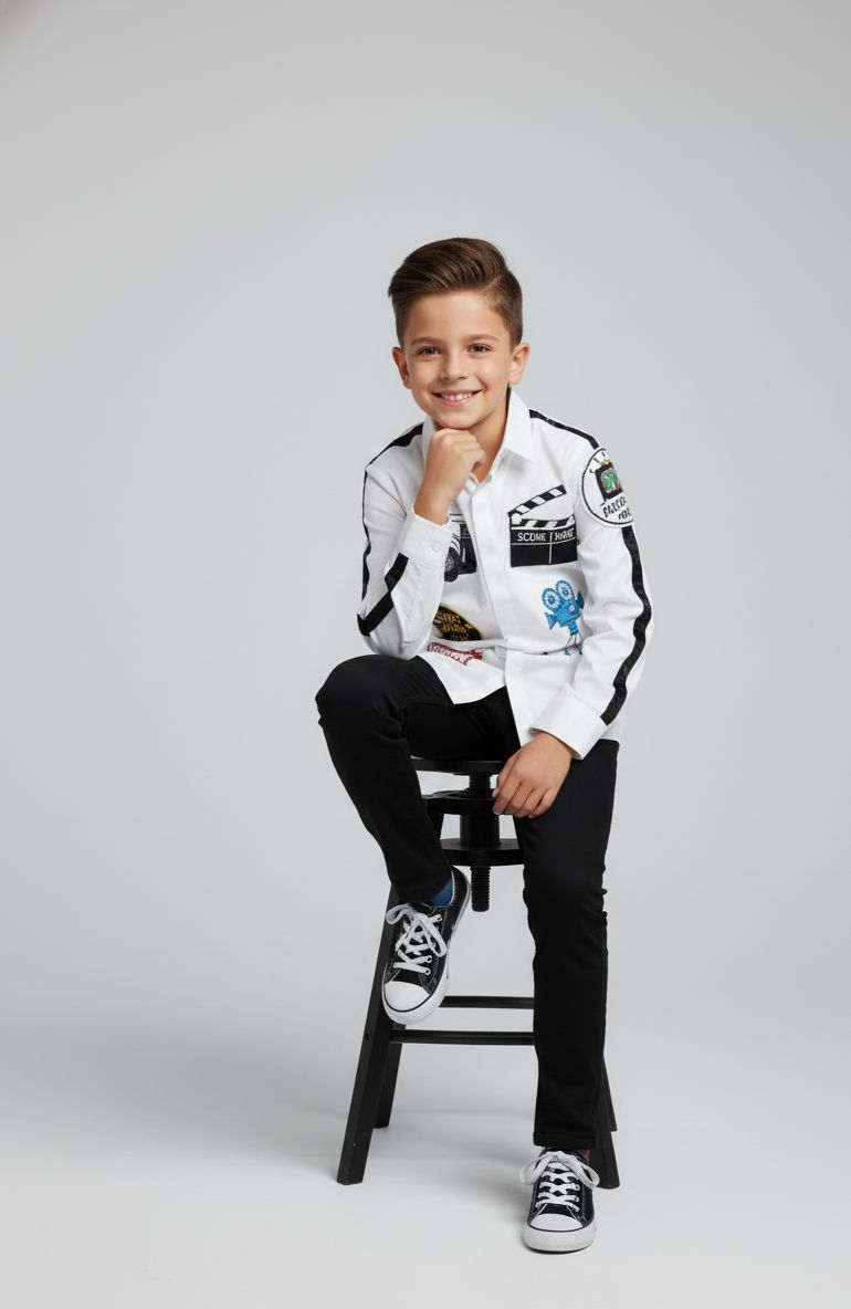Step into the spotlight with this statement white shirt, celebrating the art of storytelling and creativity. Each patch is individually handmade using intricate thread embroidery and premium leather, showcasing elements like vintage cameras, film reels, and inspiring quotes such as “Shoot More Film” and “Friends Make Life Better.”Featuring glossy black detailing along the sleeves and a customized name on the back, this shirt combines craftsmanship with personalization — making it truly one-of-a-kind. Perfect for those who love to express their creative side through bold and artistic fashion.